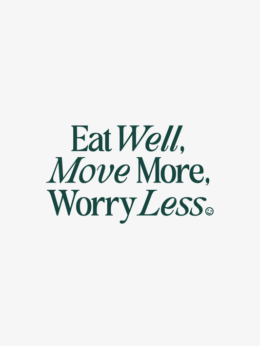 Eat Well, Move More, Worry Less T-Shirt (Front Print, White)